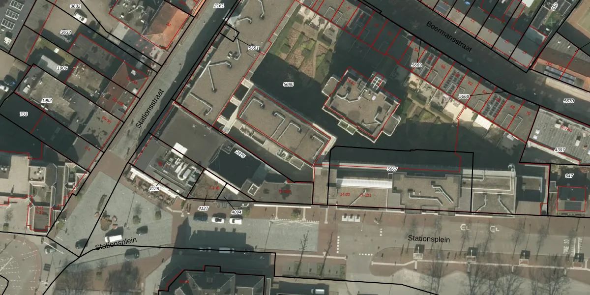 Het perceel waarop Stationsplein 39 staat heeft een oppervlakte van 5596 m². Dit is een zeer groot perceel. De perceeloppervlakte wordt geregistreerd door het Kadaster. Gedetailleerde informatie over de maten van dit perceel kunt u vinden in het rapport Kadastrale kaart met maatvoering van Stationsplein 39.