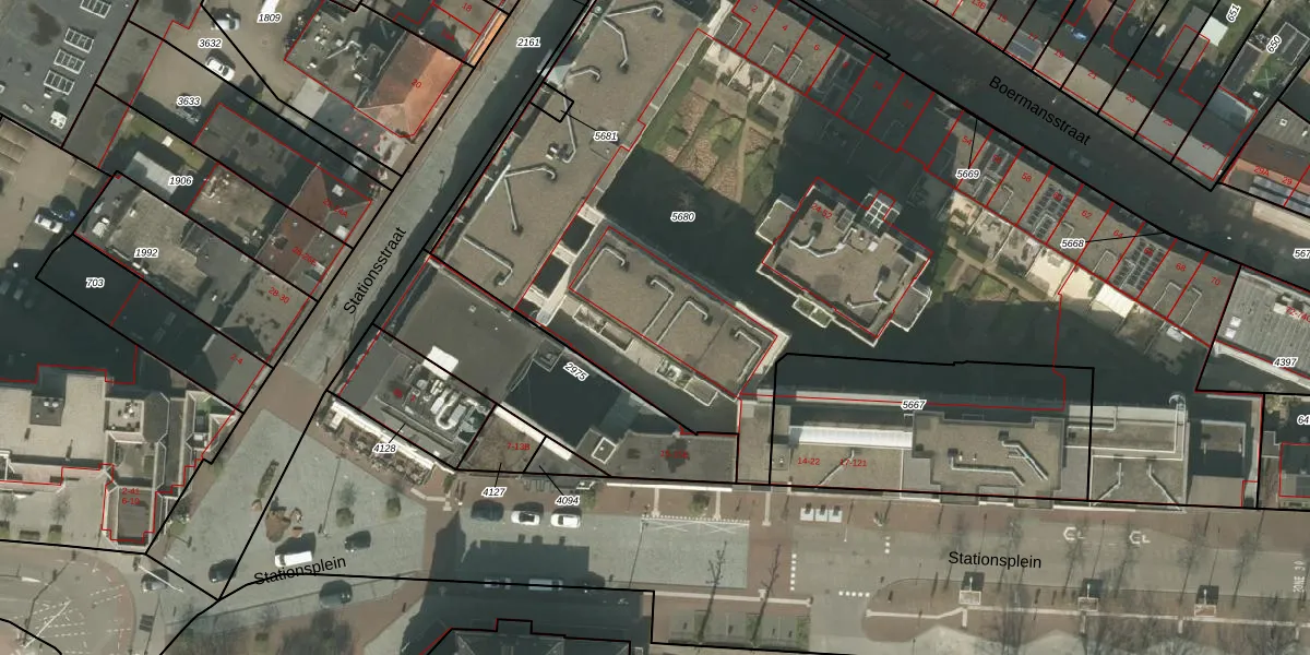 Stationsplein 43 is gelegen op kadastraal perceel WEE01S5680. Deze kadastrale aanduiding is uniek en wordt gebruikt door het Kadaster om eigendomsrechten en andere zakelijke rechten vast te leggen. Het perceel maakt onderdeel uit van de kadastrale gemeente Weert.