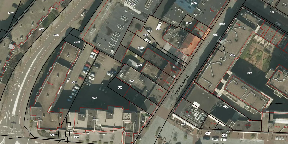 Het perceel waarop Stationsstraat 26-E staat heeft een oppervlakte van 450 m². Dit is een groot perceel. De perceeloppervlakte wordt geregistreerd door het Kadaster. Gedetailleerde informatie over de maten van dit perceel kunt u vinden in het rapport Kadastrale kaart met maatvoering van Stationsstraat 26-E.