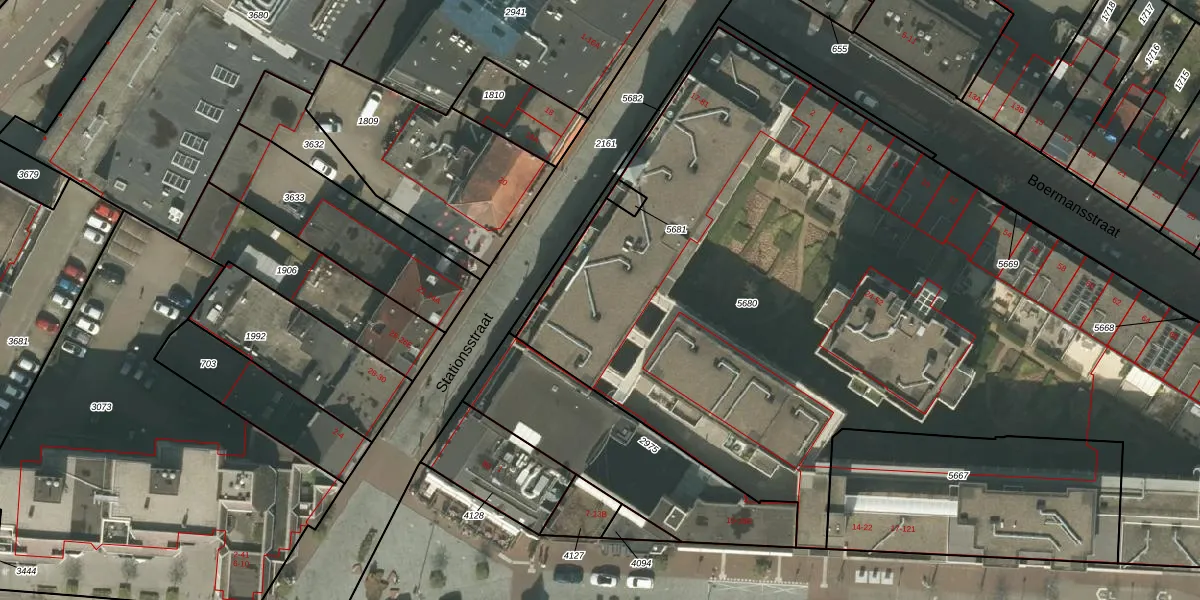 Het perceel waarop Stationsstraat 57 staat heeft een oppervlakte van 5596 m². Dit is een zeer groot perceel. De perceeloppervlakte wordt geregistreerd door het Kadaster. Gedetailleerde informatie over de maten van dit perceel kunt u vinden in het rapport Kadastrale kaart met maatvoering van Stationsstraat 57.