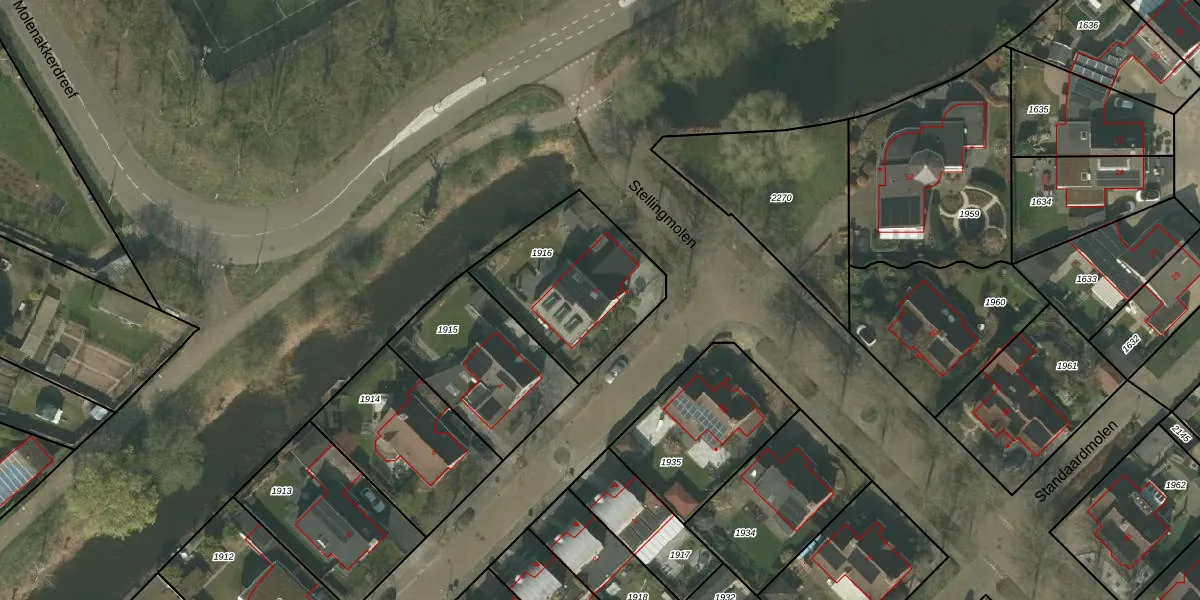 Het perceel waarop Stellingmolen 2 staat heeft een oppervlakte van 565 m². Dit is een groot perceel. De perceeloppervlakte wordt geregistreerd door het Kadaster. Gedetailleerde informatie over de maten van dit perceel kunt u vinden in het rapport Kadastrale kaart met maatvoering van Stellingmolen 2.