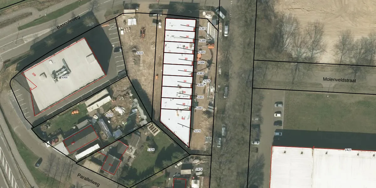 Het adres is gelegen op perceel 5381 in de sectie R en de kadastrale gemeente Weert. De kadastrale aanduiding is aldus WEE01-R-5381. De gemiddelde perceelgrootte in Weert is 3768,68 m². Dit perceel is kleiner: de perceeloppervlakte bedraagt 98 m². Het kleinste perceel in de kadastrale gemeente is 0 m² groot. De grootste perceeloppervlakte is 3,08 km². Dit is het enige adres dat aanwezig is op het perceel. De huidige grenzen van het perceel zijn digitaal in de Basisregistratie Kadaster (BRK) geregistreerd op 12-02-2026.