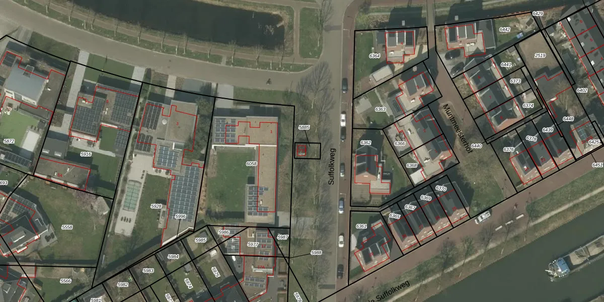 Gebruik de zoekbalk of klik op een perceel voor informatie over de adressen binnen dit perceel.