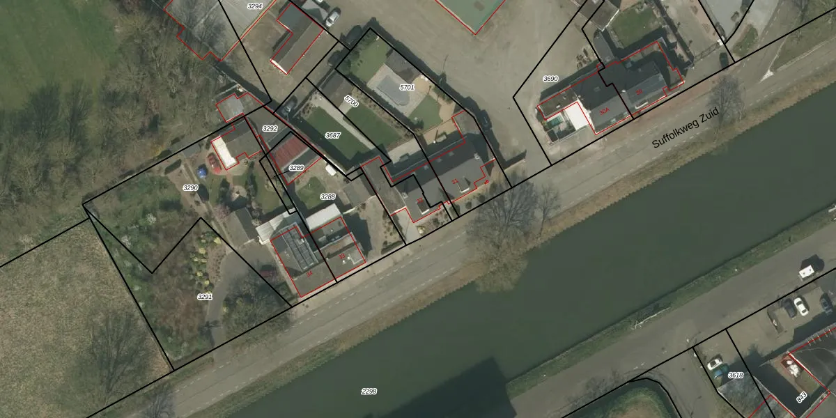 Suffolkweg Zuid 32 is gelegen op kadastraal perceel WEE01N3687. Deze kadastrale aanduiding is uniek en wordt gebruikt door het Kadaster om eigendomsrechten en andere zakelijke rechten vast te leggen. Het perceel maakt onderdeel uit van de kadastrale gemeente Weert.