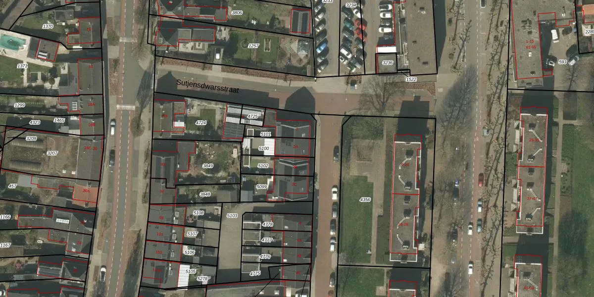Sutjensstraat 2-A is gelegen op kadastraal perceel WEE01R5100. Deze kadastrale aanduiding is uniek en wordt gebruikt door het Kadaster om eigendomsrechten en andere zakelijke rechten vast te leggen. Het perceel maakt onderdeel uit van de kadastrale gemeente Weert.