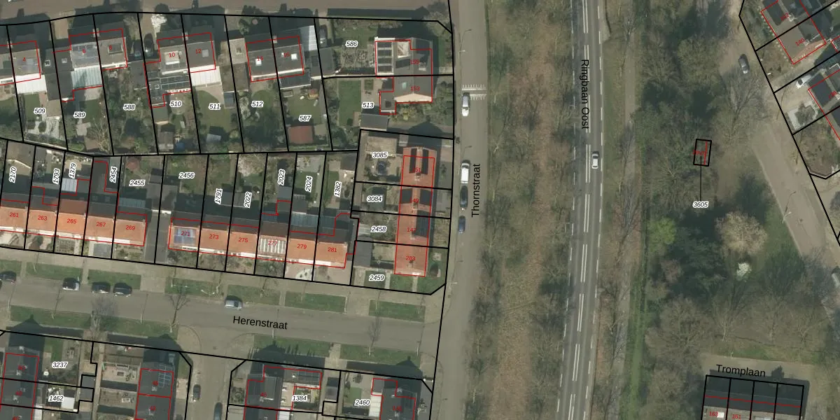 Thornstraat 149 is gelegen op kadastraal perceel WEE01T3084. Deze kadastrale aanduiding is uniek en wordt gebruikt door het Kadaster om eigendomsrechten en andere zakelijke rechten vast te leggen. Het perceel maakt onderdeel uit van de kadastrale gemeente Weert.