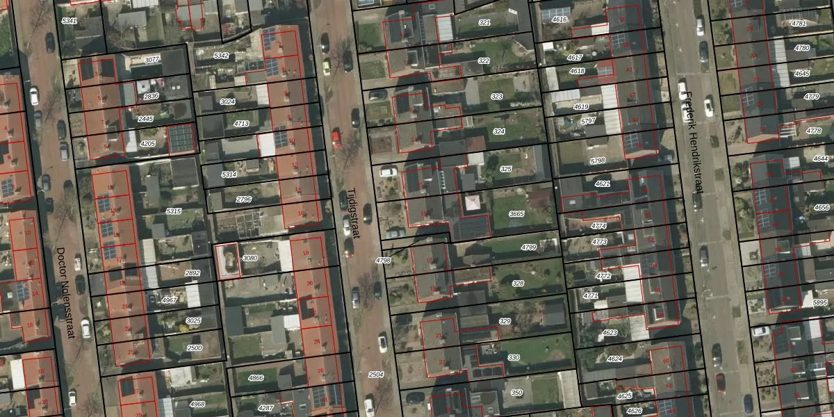 Het perceel waarop Tijdigstraat 15 staat heeft een oppervlakte van 450 m². Dit is een groot perceel. De perceeloppervlakte wordt geregistreerd door het Kadaster. Gedetailleerde informatie over de maten van dit perceel kunt u vinden in het rapport Kadastrale kaart met maatvoering van Tijdigstraat 15.