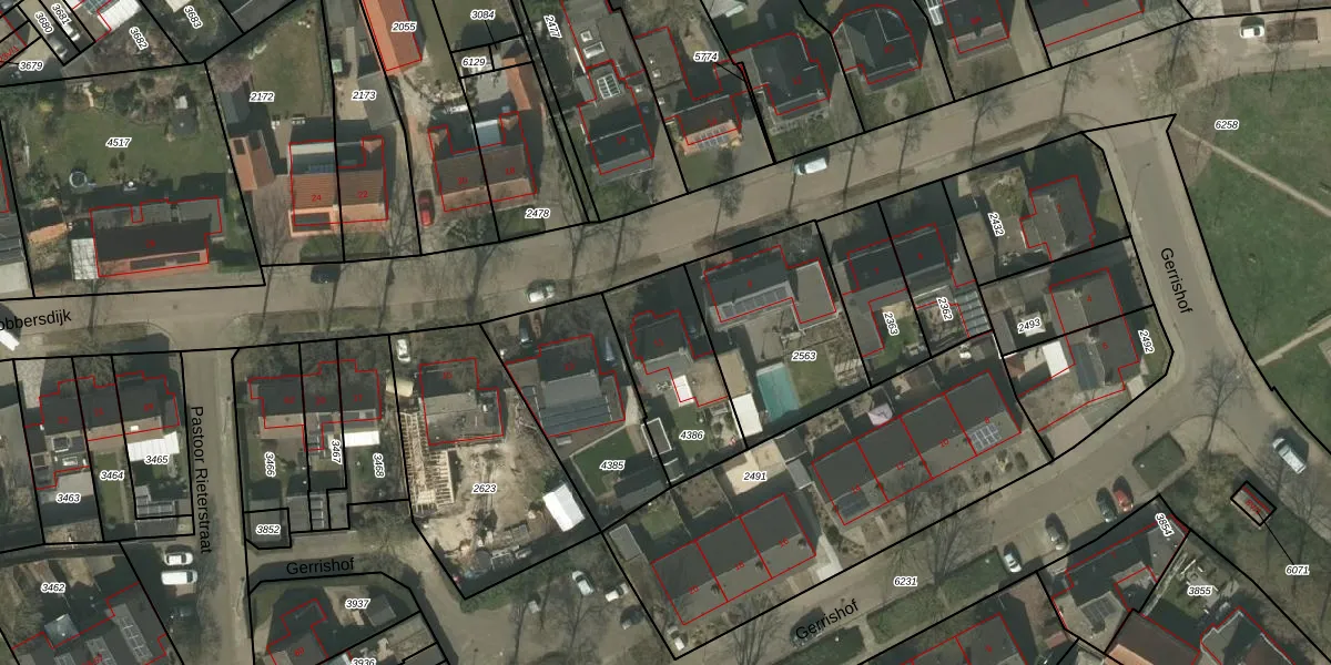 Gebruik de zoekbalk of klik op een perceel voor informatie over de adressen binnen dit perceel.