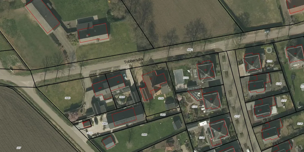 Het perceel waarop Tobbersdijk 47 staat heeft een oppervlakte van 756 m². Dit is een groot perceel. De perceeloppervlakte wordt geregistreerd door het Kadaster. Gedetailleerde informatie over de maten van dit perceel kunt u vinden in het rapport Kadastrale kaart met maatvoering van Tobbersdijk 47.
