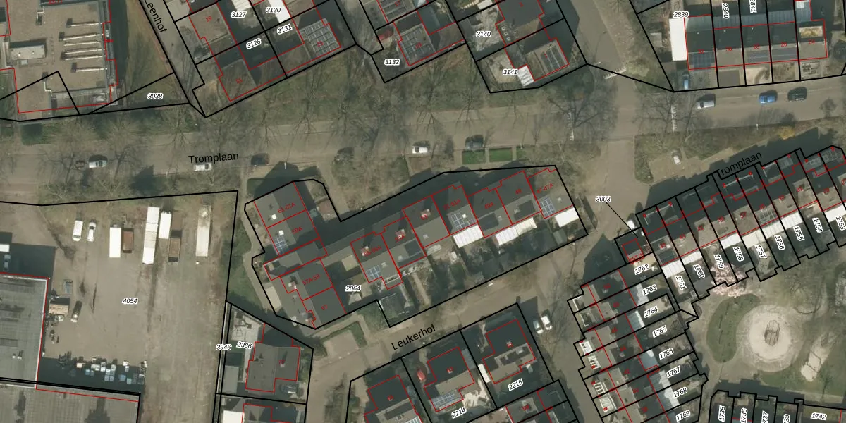 Tromplaan 53 is gelegen op kadastraal perceel WEE01T2064. Deze kadastrale aanduiding is uniek en wordt gebruikt door het Kadaster om eigendomsrechten en andere zakelijke rechten vast te leggen. Het perceel maakt onderdeel uit van de kadastrale gemeente Weert.