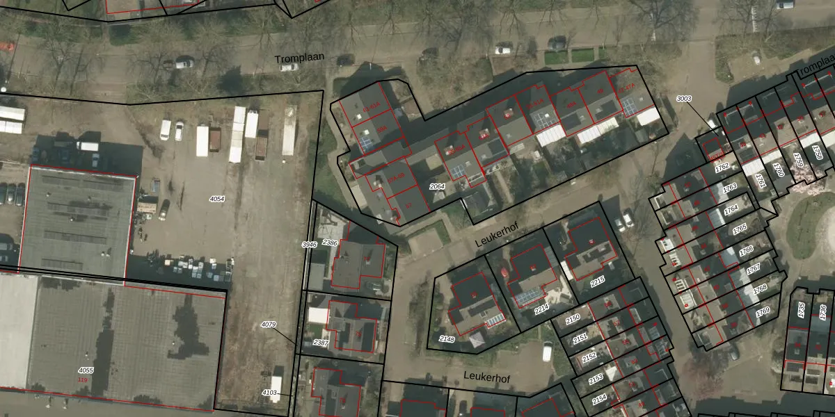 Tromplaan 57 is gelegen op kadastraal perceel WEE01T2064. Deze kadastrale aanduiding is uniek en wordt gebruikt door het Kadaster om eigendomsrechten en andere zakelijke rechten vast te leggen. Het perceel maakt onderdeel uit van de kadastrale gemeente Weert.