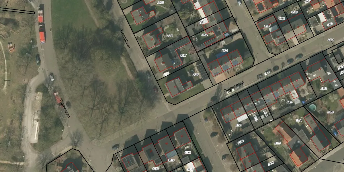 Gebruik de zoekbalk of klik op een perceel voor informatie over de adressen binnen dit perceel.