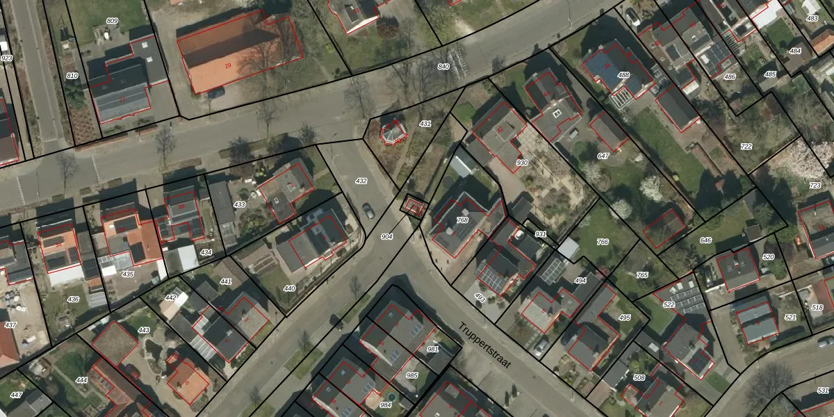 Truppertstraat 1-T-1 is gelegen op kadastraal perceel WEE01AC904. Deze kadastrale aanduiding is uniek en wordt gebruikt door het Kadaster om eigendomsrechten en andere zakelijke rechten vast te leggen. Het perceel maakt onderdeel uit van de kadastrale gemeente Weert.