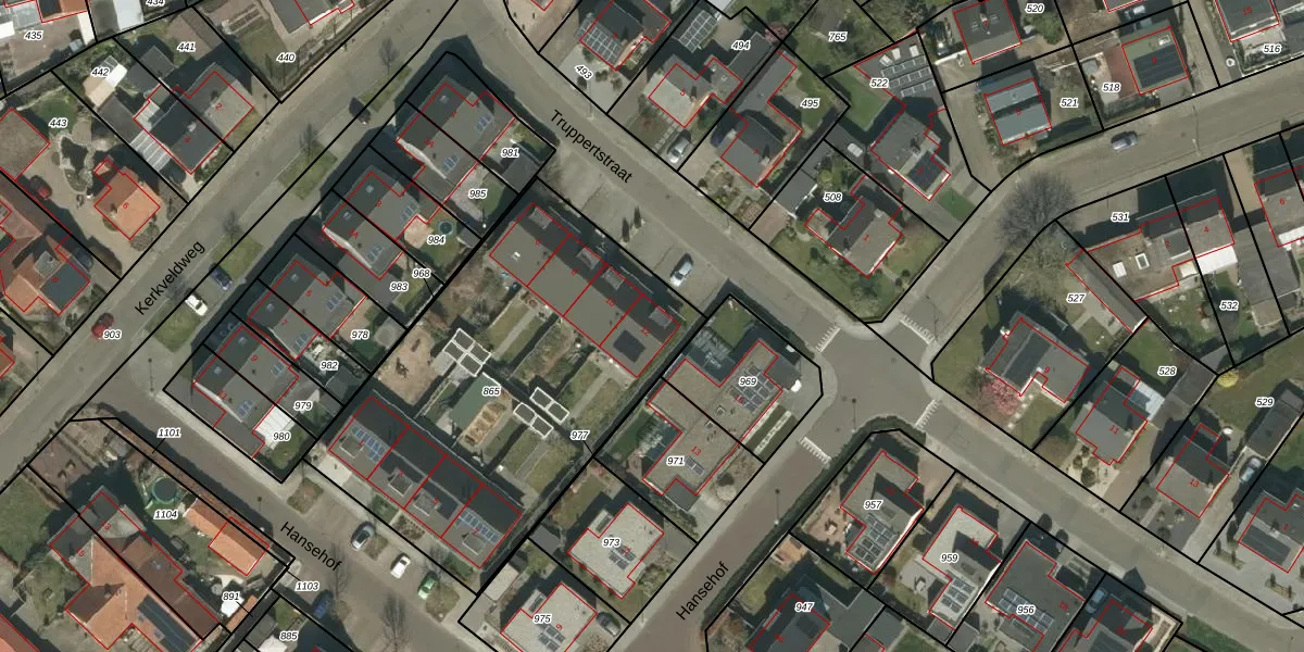Het perceel waarop Truppertstraat 12 staat heeft een oppervlakte van 1895 m². Dit is een zeer groot perceel. De perceeloppervlakte wordt geregistreerd door het Kadaster. Gedetailleerde informatie over de maten van dit perceel kunt u vinden in het rapport Kadastrale kaart met maatvoering van Truppertstraat 12.