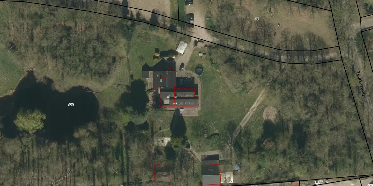Het perceel waarop Tuurkesweg 18 staat heeft een oppervlakte van 2,6 ha. Dit is een zeer groot perceel. De perceeloppervlakte wordt geregistreerd door het Kadaster. Gedetailleerde informatie over de maten van dit perceel kunt u vinden in het rapport Kadastrale kaart met maatvoering van Tuurkesweg 18.