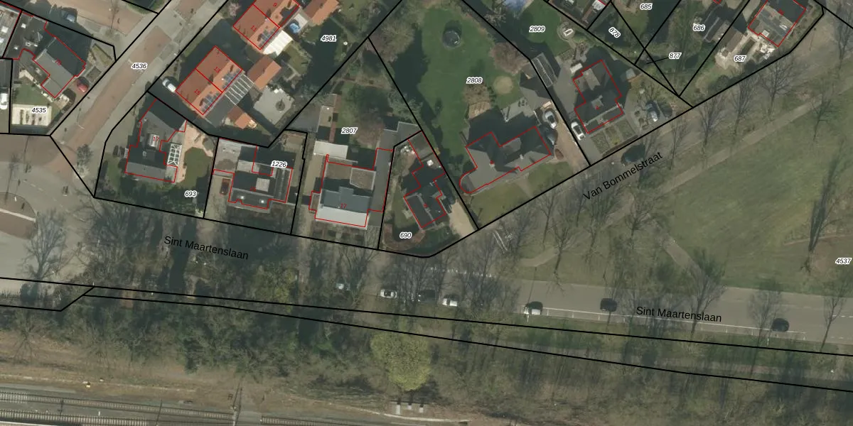 Het perceel waarop Van Bommelstraat 8 staat heeft een oppervlakte van 437 m². Dit is een groot perceel. De perceeloppervlakte wordt geregistreerd door het Kadaster. Gedetailleerde informatie over de maten van dit perceel kunt u vinden in het rapport Kadastrale kaart met maatvoering van Van Bommelstraat 8.