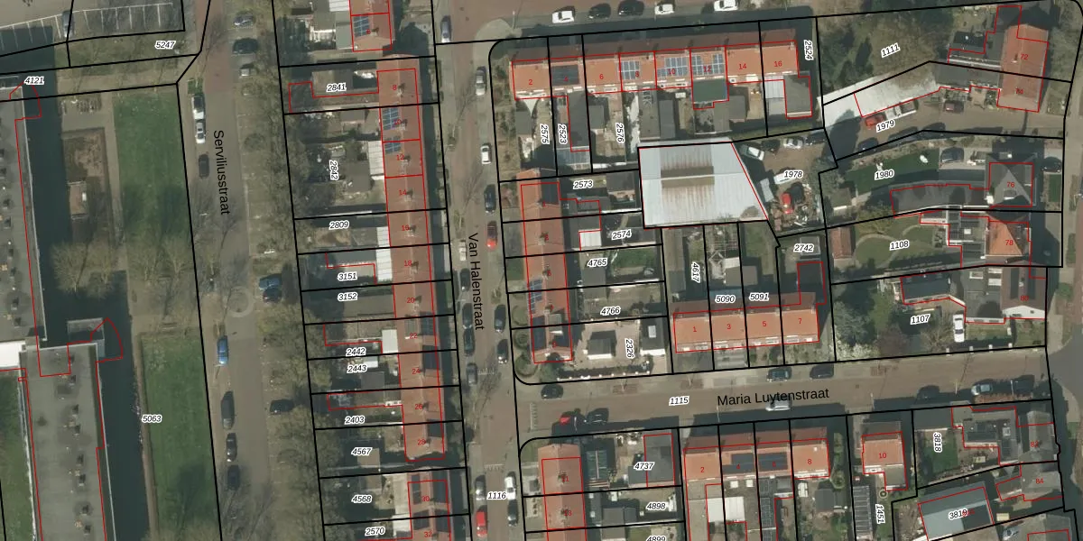 Het perceel waarop Van Halenstraat 5 staat heeft een oppervlakte van 196 m². Dit is een middelgroot perceel. De perceeloppervlakte wordt geregistreerd door het Kadaster. Gedetailleerde informatie over de maten van dit perceel kunt u vinden in het rapport Kadastrale kaart met maatvoering van Van Halenstraat 5.
