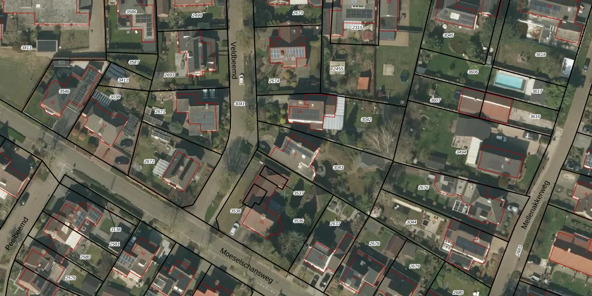 Gebruik de zoekbalk of klik op een perceel voor informatie over de adressen binnen dit perceel.