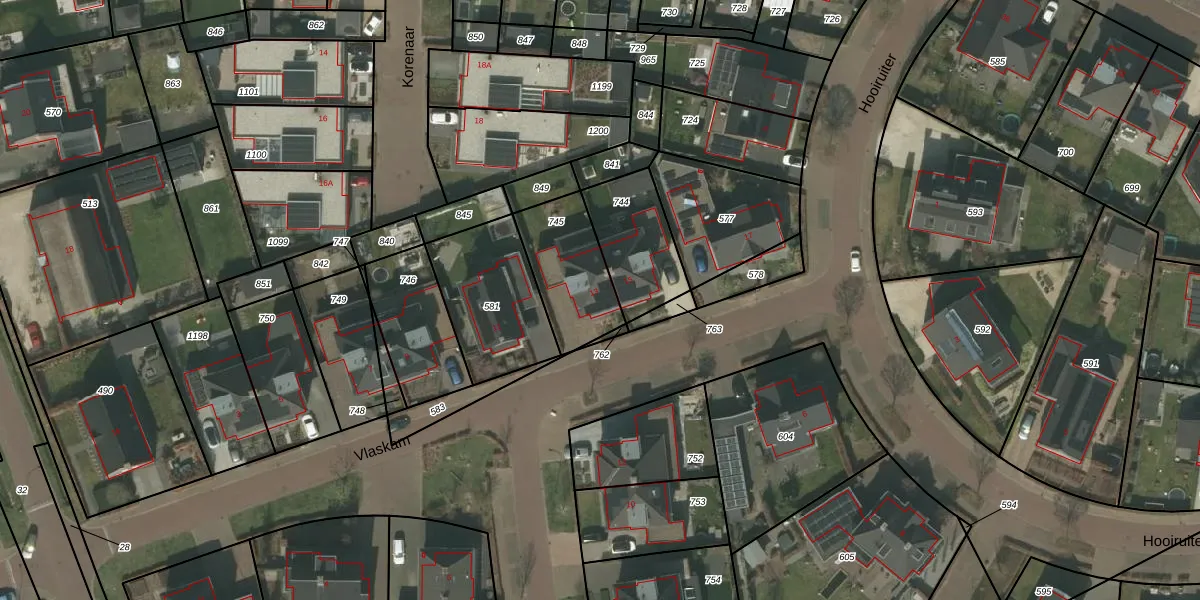 Het perceel waarop Vlaskam 13 staat heeft een oppervlakte van 291 m². Dit is een middelgroot perceel. De perceeloppervlakte wordt geregistreerd door het Kadaster. Gedetailleerde informatie over de maten van dit perceel kunt u vinden in het rapport Kadastrale kaart met maatvoering van Vlaskam 13.