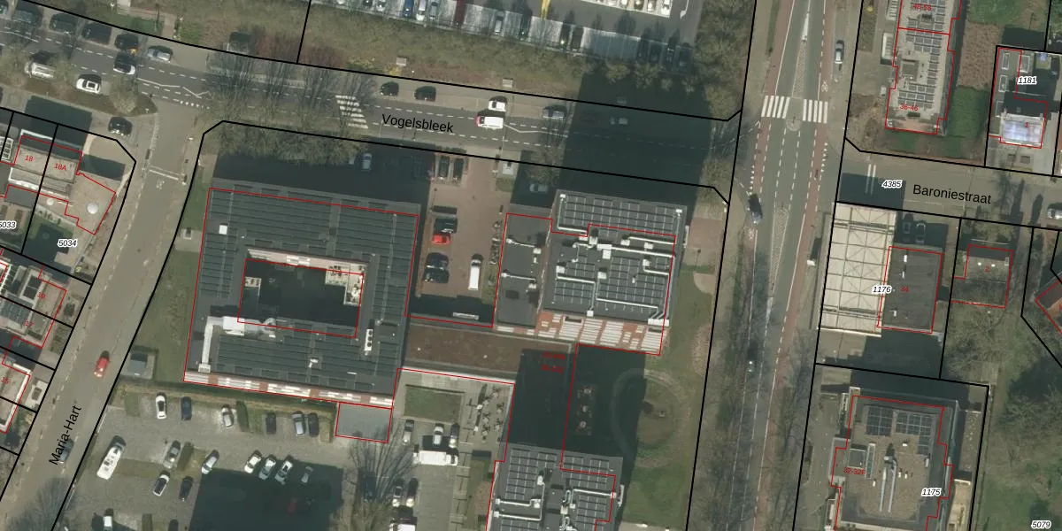 Het perceel waarop Vogelsbleek 80 staat heeft een oppervlakte van 9967 m². Dit is een zeer groot perceel. De perceeloppervlakte wordt geregistreerd door het Kadaster. Gedetailleerde informatie over de maten van dit perceel kunt u vinden in het rapport Kadastrale kaart met maatvoering van Vogelsbleek 80.