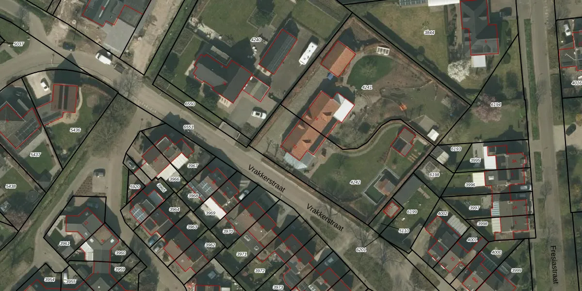 Het perceel waarop Vrakkerstraat 72 staat heeft een oppervlakte van 1215 m². Dit is een zeer groot perceel. De perceeloppervlakte wordt geregistreerd door het Kadaster. Gedetailleerde informatie over de maten van dit perceel kunt u vinden in het rapport Kadastrale kaart met maatvoering van Vrakkerstraat 72.