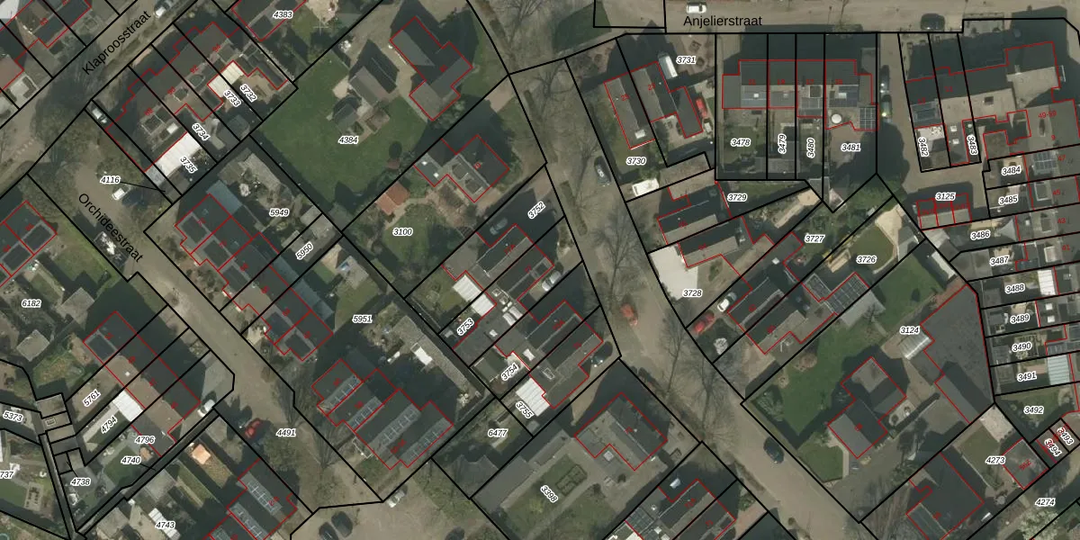 Gebruik de zoekbalk of klik op een perceel voor informatie over de adressen binnen dit perceel.