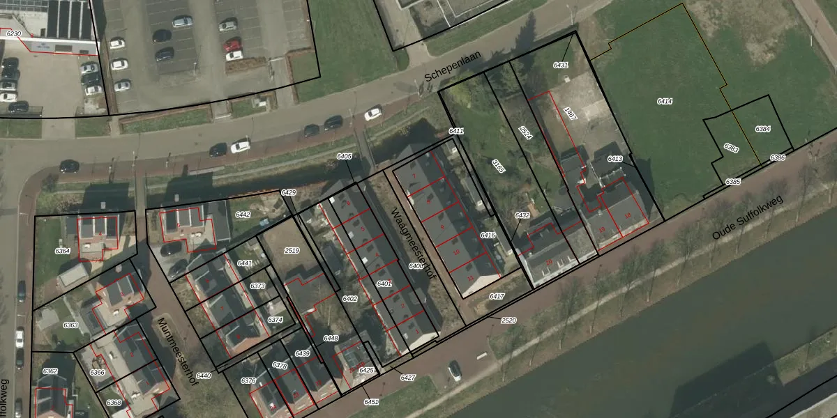 Het perceel waarop Waagmeesterhof 8 staat heeft een oppervlakte van 556 m². Dit is een groot perceel. De perceeloppervlakte wordt geregistreerd door het Kadaster. Gedetailleerde informatie over de maten van dit perceel kunt u vinden in het rapport Kadastrale kaart met maatvoering van Waagmeesterhof 8.