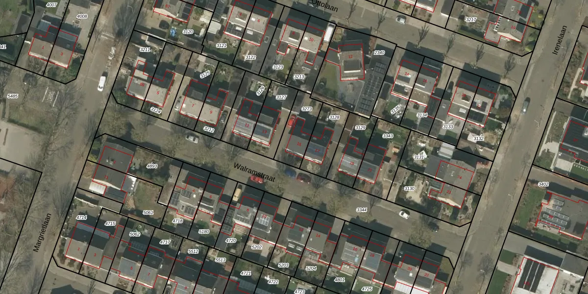 Het perceel waarop Walramstraat 15 staat heeft een oppervlakte van 237 m². Dit is een middelgroot perceel. De perceeloppervlakte wordt geregistreerd door het Kadaster. Gedetailleerde informatie over de maten van dit perceel kunt u vinden in het rapport Kadastrale kaart met maatvoering van Walramstraat 15.
