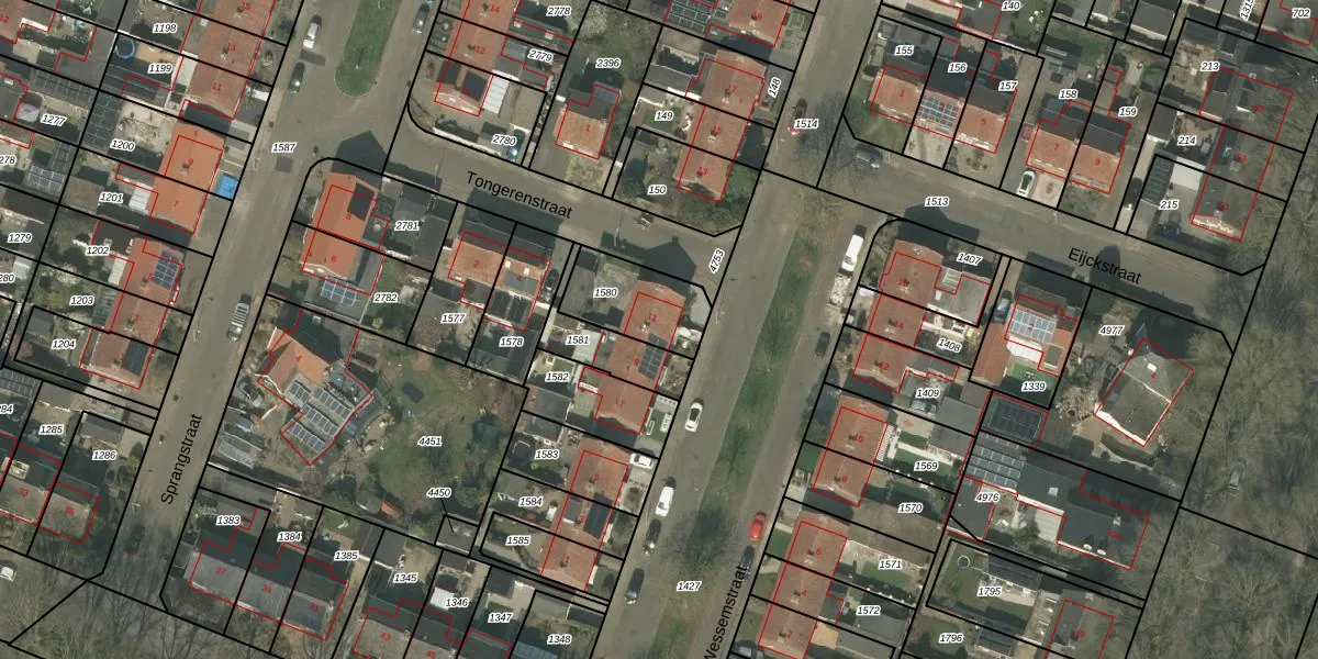 Gebruik de zoekbalk of klik op een perceel voor informatie over de adressen binnen dit perceel.