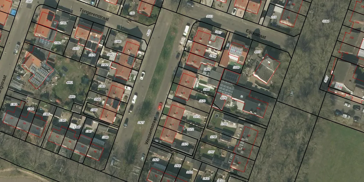 Gebruik de zoekbalk of klik op een perceel voor informatie over de adressen binnen dit perceel.