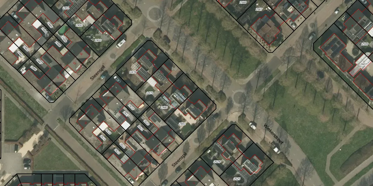 Wiekendreef 9 is gelegen op kadastraal perceel WEE01C2480. Deze kadastrale aanduiding is uniek en wordt gebruikt door het Kadaster om eigendomsrechten en andere zakelijke rechten vast te leggen. Het perceel maakt onderdeel uit van de kadastrale gemeente Weert.