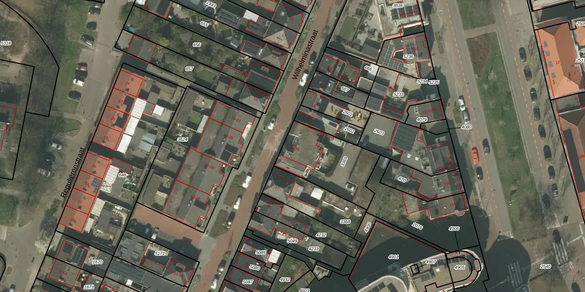 Het perceel waarop Wilhelminastraat 25 staat heeft een oppervlakte van 571 m². Dit is een groot perceel. De perceeloppervlakte wordt geregistreerd door het Kadaster. Gedetailleerde informatie over de maten van dit perceel kunt u vinden in het rapport Kadastrale kaart met maatvoering van Wilhelminastraat 25.
