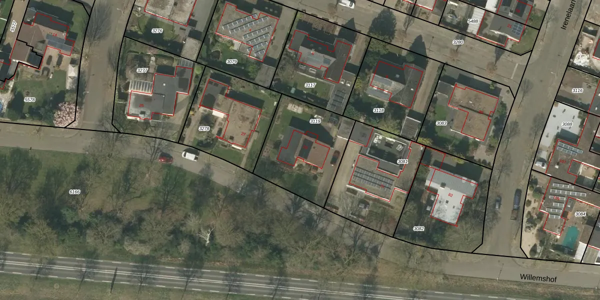 Het perceel waarop Willemshof 29 staat heeft een oppervlakte van 779 m². Dit is een groot perceel. De perceeloppervlakte wordt geregistreerd door het Kadaster. Gedetailleerde informatie over de maten van dit perceel kunt u vinden in het rapport Kadastrale kaart met maatvoering van Willemshof 29.