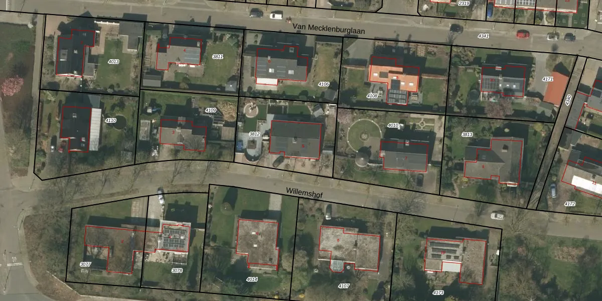 Gebruik de zoekbalk of klik op een perceel voor informatie over de adressen binnen dit perceel.