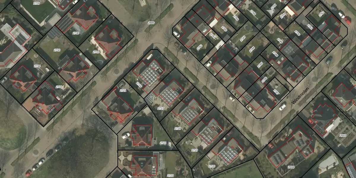Het perceel waarop Windmolen 20 staat heeft een oppervlakte van 413 m². Dit is een groot perceel. De perceeloppervlakte wordt geregistreerd door het Kadaster. Gedetailleerde informatie over de maten van dit perceel kunt u vinden in het rapport Kadastrale kaart met maatvoering van Windmolen 20.