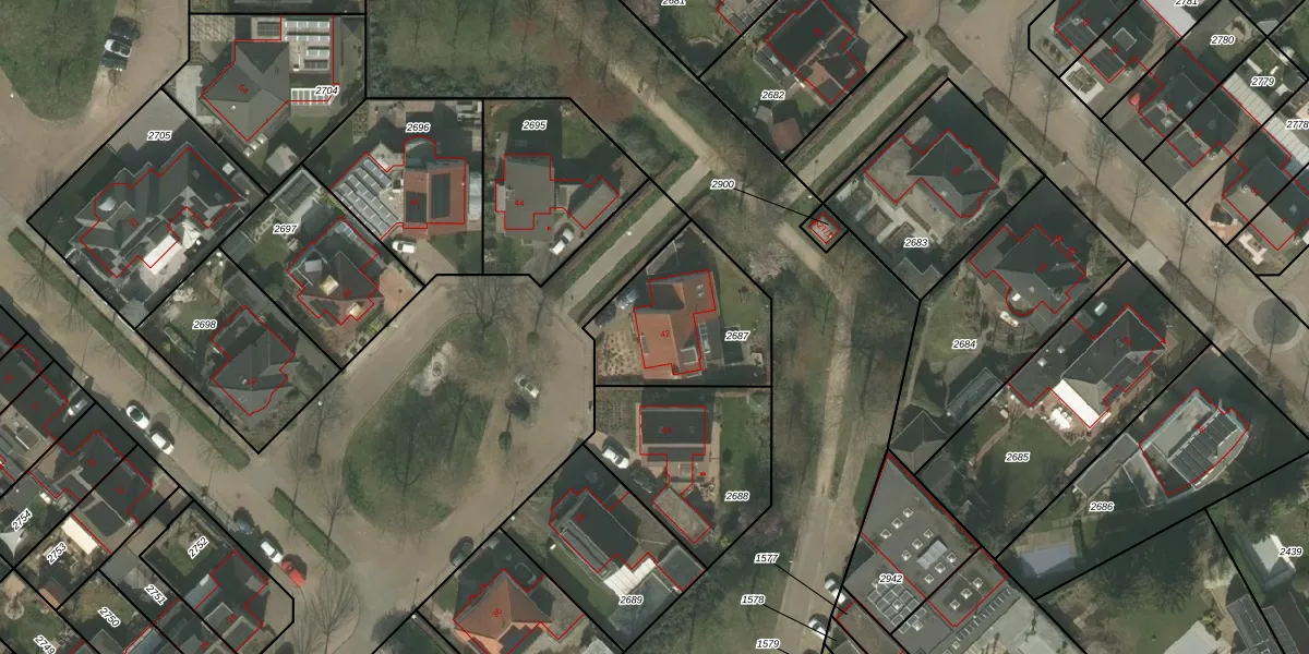 Gebruik de zoekbalk of klik op een perceel voor informatie over de adressen binnen dit perceel.