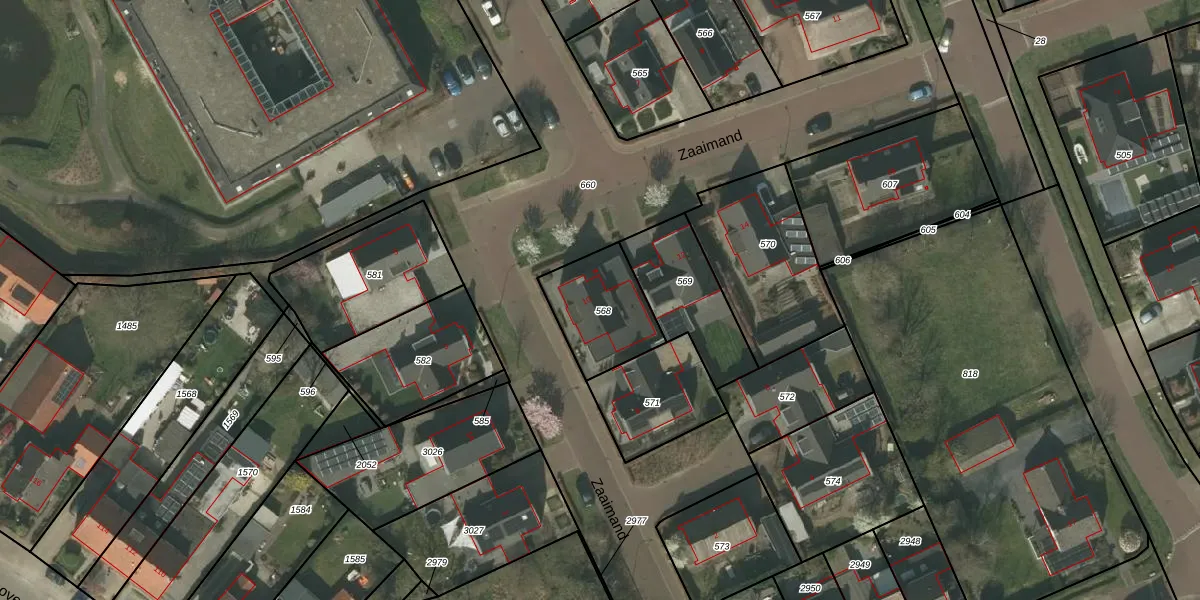 Gebruik de zoekbalk of klik op een perceel voor informatie over de adressen binnen dit perceel.