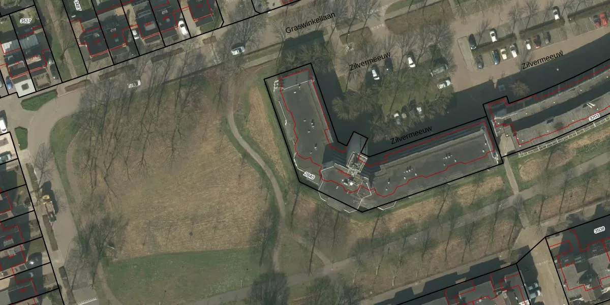 Het perceel waarop Zilvermeeuw 106 staat heeft een oppervlakte van 1580 m². Dit is een zeer groot perceel. De perceeloppervlakte wordt geregistreerd door het Kadaster. Gedetailleerde informatie over de maten van dit perceel kunt u vinden in het rapport Kadastrale kaart met maatvoering van Zilvermeeuw 106.
