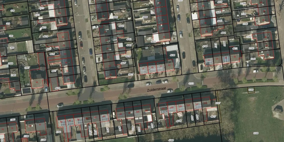 Het perceel waarop Zuiderstraat 47 staat heeft een oppervlakte van 743 m². Dit is een groot perceel. De perceeloppervlakte wordt geregistreerd door het Kadaster. Gedetailleerde informatie over de maten van dit perceel kunt u vinden in het rapport Kadastrale kaart met maatvoering van Zuiderstraat 47.
