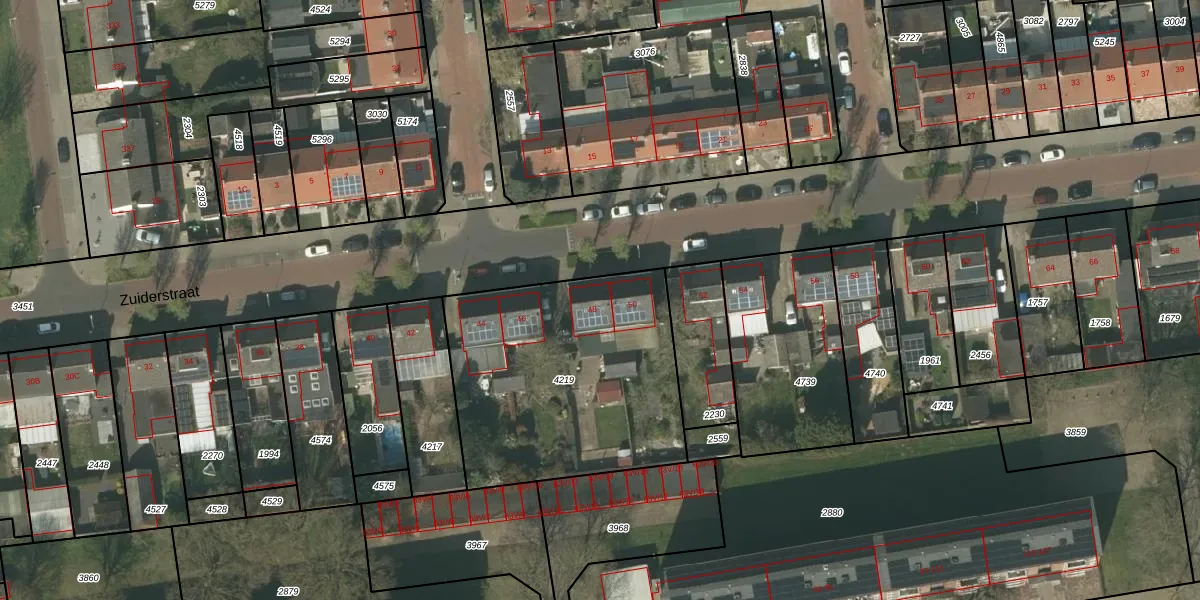 Het perceel waarop Zuiderstraat 48 staat heeft een oppervlakte van 1199 m². Dit is een zeer groot perceel. De perceeloppervlakte wordt geregistreerd door het Kadaster. Gedetailleerde informatie over de maten van dit perceel kunt u vinden in het rapport Kadastrale kaart met maatvoering van Zuiderstraat 48.