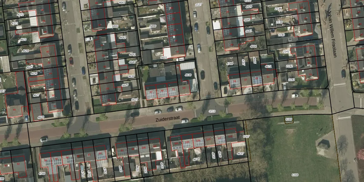 Het perceel waarop Zuiderstraat 53 staat heeft een oppervlakte van 253 m². Dit is een middelgroot perceel. De perceeloppervlakte wordt geregistreerd door het Kadaster. Gedetailleerde informatie over de maten van dit perceel kunt u vinden in het rapport Kadastrale kaart met maatvoering van Zuiderstraat 53.
