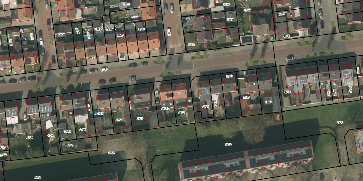 Gebruik de zoekbalk of klik op een perceel voor informatie over de adressen binnen dit perceel.