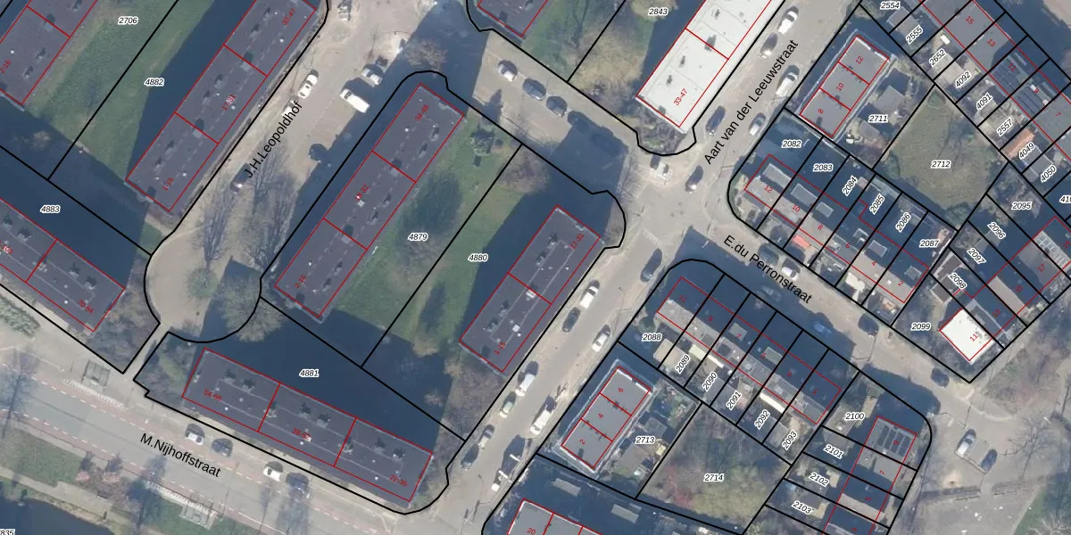 Aart van der Leeuwstraat 21 is gelegen op kadastraal perceel WEE02B4880. Deze kadastrale aanduiding is uniek en wordt gebruikt door het Kadaster om eigendomsrechten en andere zakelijke rechten vast te leggen. Het perceel maakt onderdeel uit van de kadastrale gemeente Weesp.