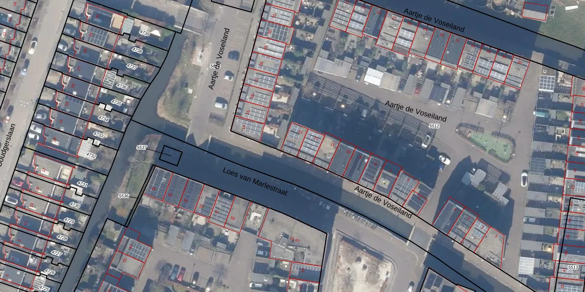 Het perceel waarop Aartje de Voseiland 13 staat heeft een oppervlakte van 7728 m². Dit is een zeer groot perceel. De perceeloppervlakte wordt geregistreerd door het Kadaster. Gedetailleerde informatie over de maten van dit perceel kunt u vinden in het rapport Kadastrale kaart met maatvoering van Aartje de Voseiland 13.
