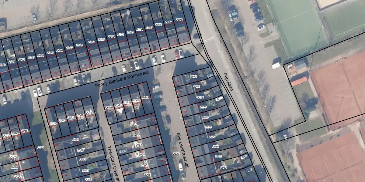 Gebruik de zoekbalk of klik op een perceel voor informatie over de adressen binnen dit perceel.