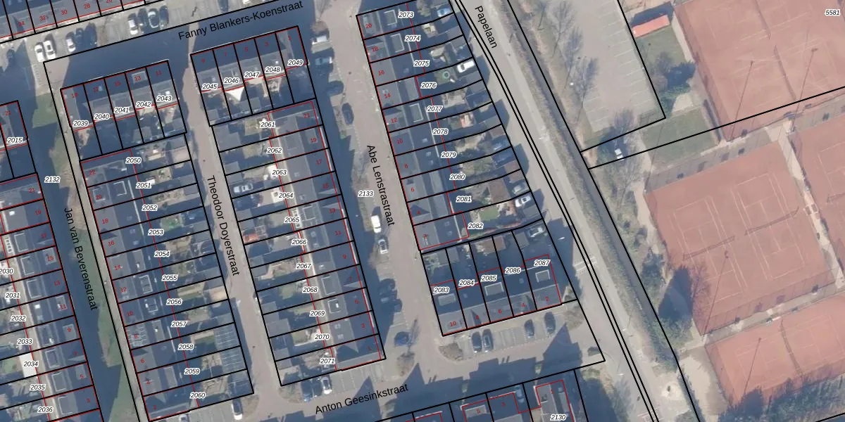 Gebruik de zoekbalk of klik op een perceel voor informatie over de adressen binnen dit perceel.