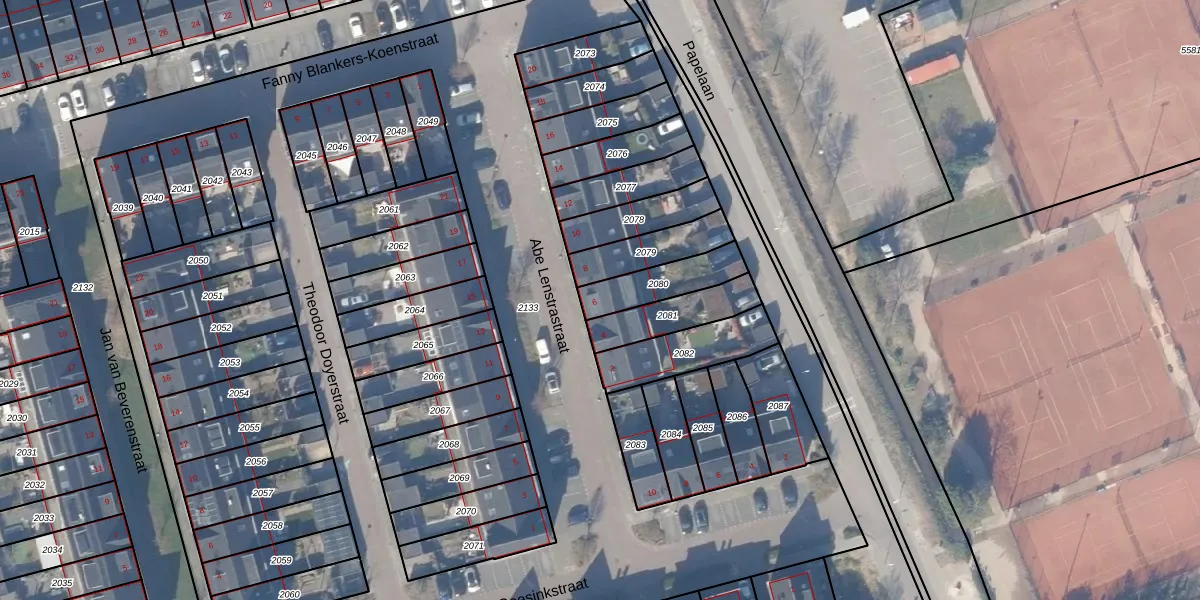 Gebruik de zoekbalk of klik op een perceel voor informatie over de adressen binnen dit perceel.