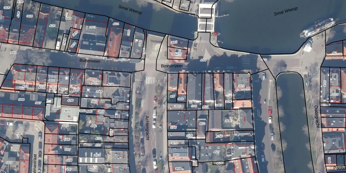 Achtergracht 1 is gelegen op kadastraal perceel WEE02A826. Deze kadastrale aanduiding is uniek en wordt gebruikt door het Kadaster om eigendomsrechten en andere zakelijke rechten vast te leggen. Het perceel maakt onderdeel uit van de kadastrale gemeente Weesp.