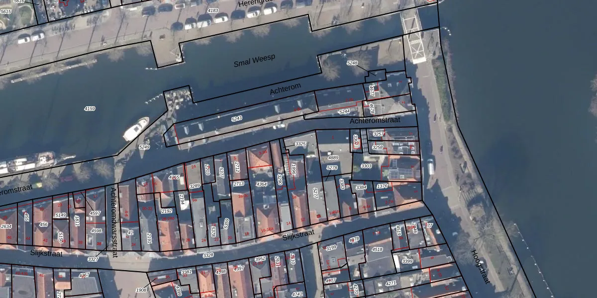 Het adres ligt op het perceel WEE02-A-5277, dat zich in de kadastrale gemeente Weesp bevindt. Het perceel is kleiner dan gemiddeld in Weesp. Het perceel is 200 m² groot, terwijl het gemiddelde ligt op 2523,05 m². Het kleinste perceel in de kadastrale gemeente is 0 m² groot. De grootste perceeloppervlakte is 27,8 ha. Op het perceel liggen in totaal 4 adressen. In de Basisregistratie Kadaster (BRK) werden de grenzen van het perceel geregistreerd op 27-11-2000.