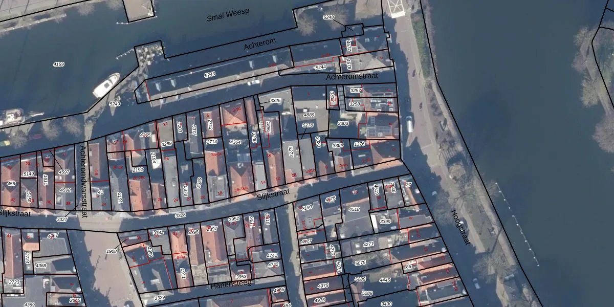 Het perceel waarop het adres ligt is WEE02-A-5278. De afkorting 'WEE02' staat voor kadastrale gemeente Weesp. De gemiddelde perceelgrootte in Weesp is 2523,05 m². Dit perceel is kleiner: de perceeloppervlakte bedraagt 63 m². De grootste perceeloppervlakte in de kadastrale gemeente is 27,8 ha. De kleinste oppervlakte bedraagt 0 m². Op het perceel zijn 3 adressen aanwezig. In de Basisregistratie Kadaster (BRK) werden de grenzen van het perceel geregistreerd op 27-11-2000.